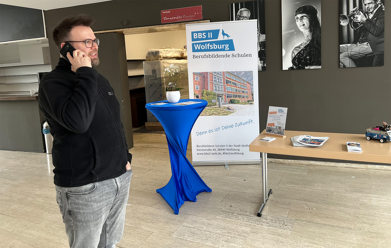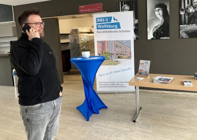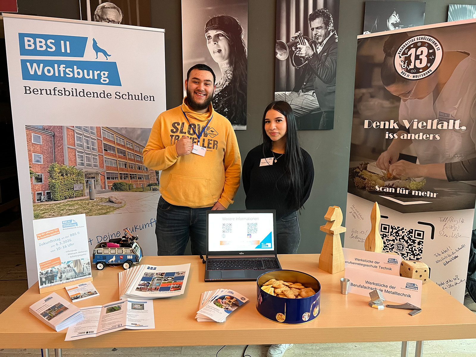 Darüber hinaus warb die BBS II Wolfsburg für ihren Tag der offenen Tür bzw. Zukunftstag am 04.03.2026, an dem Interessierte die Schule vor Ort kennenlernen, Einblicke in den Unterricht erhalten und mit Lehrkräften sowie Schülerinnen und Schülern ins Gespräch kommen können.