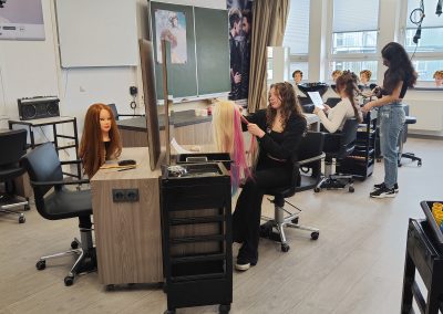 • Im F-Gebäude konnten die Besucher den Friseurberuf näher kennenlernen und Auszubildenen im Übungssalon beim Haare machen am Model oder Medium zuschauen.
