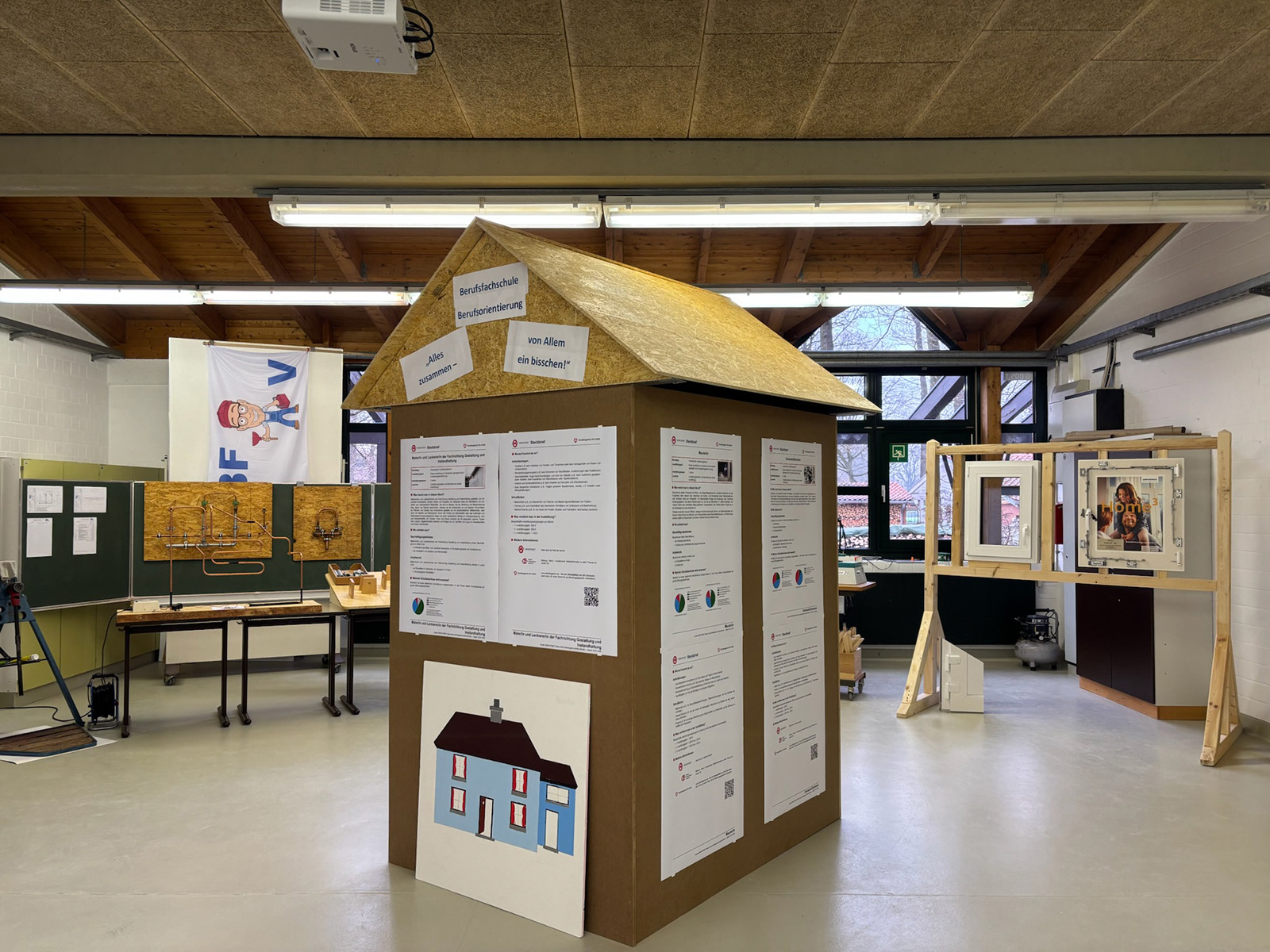 Dann hatten die Besucher die Gelegenheit mit dem kostenlosen Shuttlebus zum Standort an der Dieselstraße zu wechseln. Im dortigen G-Gebäude stellten sich Farb-, Metall-, Holz- und Bautechnik vor. Ergänzt wurde dies durch die Präsentation der Werkfeuerwehr und die Vorstellung des Sonderpädagogik-Bereichs. Interessierte zukünftige Schülerinnen und Schüler konnten eine individuelle Beratung zur Berufsorientierung erhalten.