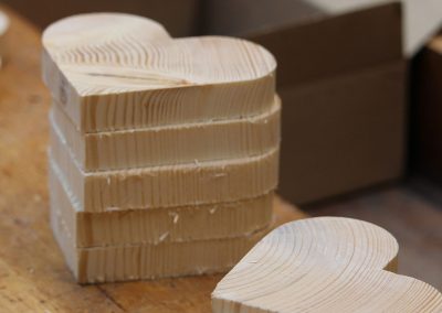 • Die Holztechnik bot neben der Maschinenvorstellung viele Mitmach-Aktionen an wie z.B. das Ausschneiden von Herzen, das Fräsen von Namen oder Brennen von Schrift bzw. Symbolen in Holz.