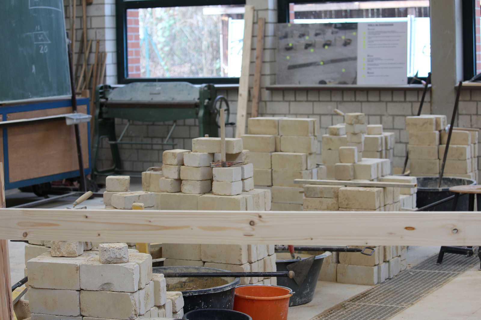 • Außerdem stellte sich Bautechnik vor. Besucher konnten sich hier u.a. über das Mauern von Wänden und Pfeilern informieren.
