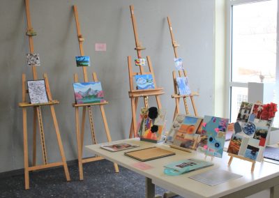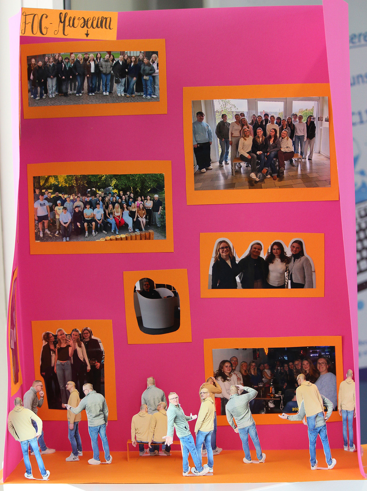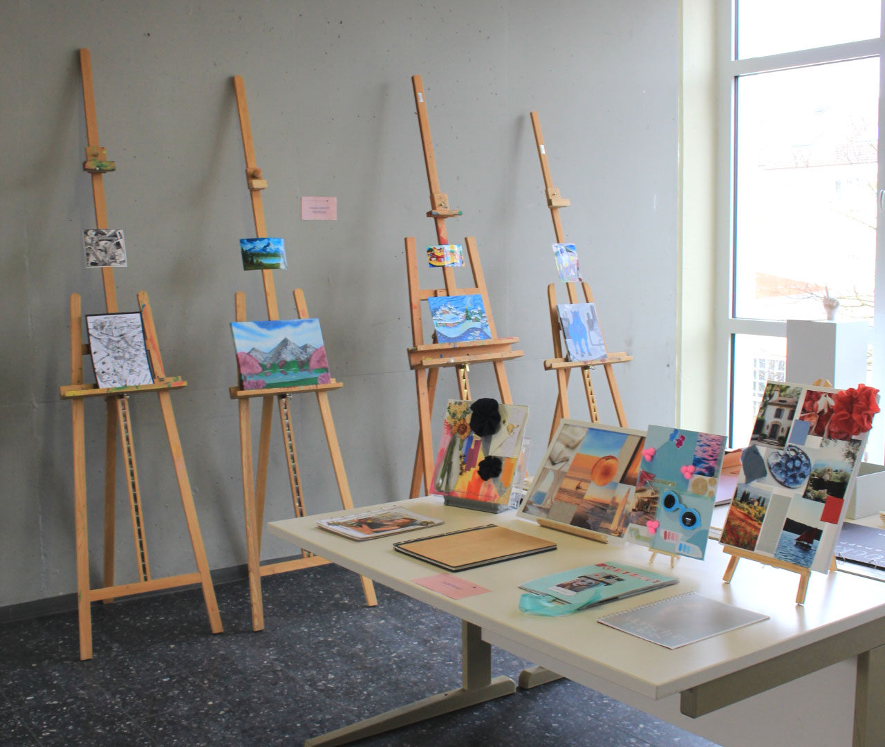 • Im C-Gebäude konnten die Besucher direkt im Eingangsbereich durch Vertreter von HWK, IHK und Betrieben mit der Kontaktaufnahme starten, bevor sie sich über Schulformen wie die Fachoberschule oder das Berufliche Gymnasium näher informieren konnten: Die Schülerinnen und Schüler der FOS Technik erklärten verschiedene Tätigkeitsbereiche, die der FOS Gestaltung präsentierten ihre kreativen Arbeiten wie z.B. ein Modell einer Museumsausstellung, in dem die Lehrer Herr Dankert und Herr Schmelzer selbst die Besucher sind. Die Lernenden des Beruflichen Gymnasiums der Ingenieurswissenschaften zeigten besondere Projekte wie z.B. ein Rennen autonomer Fahrzeuge. Zusätzlich informierten Auszubildene über verschiedene technische Berufe wie z.B. Kälte- und Klimatechniker/in, Zweirad-Mechaniker/in oder Fachinformatiker/in u.v.m. Außerdem konnten die Besucher die Elektrotechnik kennenlernen, wo sie den Sortierprozess von Werkstücken an einer Sortieranlage beobachten und sich u.a. über verschiedene Energieflüsse informieren konnten. Die Schülervertretung bot ein Gewinnspiel an, indem die Gäste ein Feedback über den Zukunftstag abgeben konnten.