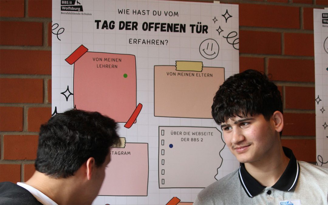 Am Mittwoch, den 04.März 2026, fand von 10 bis 16 Uhr an der BBS II Wolfsburg der Tag der offenen Tür unter dem Motto „Zukunftstag“ statt. Dieser präsentierte an Info-Ständen die Bildungsangebote sowie die Ergebnisse von Schülerprojekten und lud in Mitmach-Aktionen zum Ausprobieren bestimmter beruflicher Tätigkeiten ein. Ein Highlight war die Ausbildungsplatzbörse, welche in einem „Speeddating“ die Kontaktaufnahme mit Betrieben der Region ermöglichte.