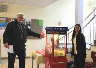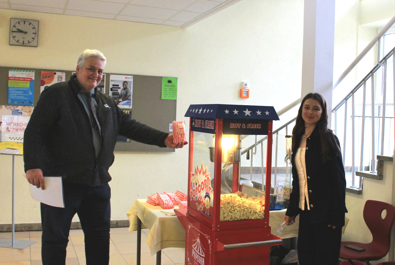 An der Kleiststraße wurden die Gäste im Hauptgebäude (A) mit selbstgemachtem Popcorn begrüßt, bevor sie anschließend den Rundgang durch die verschiedenen Gebäude der unterschiedlichen beruflichen Fachrichtungen begannen.